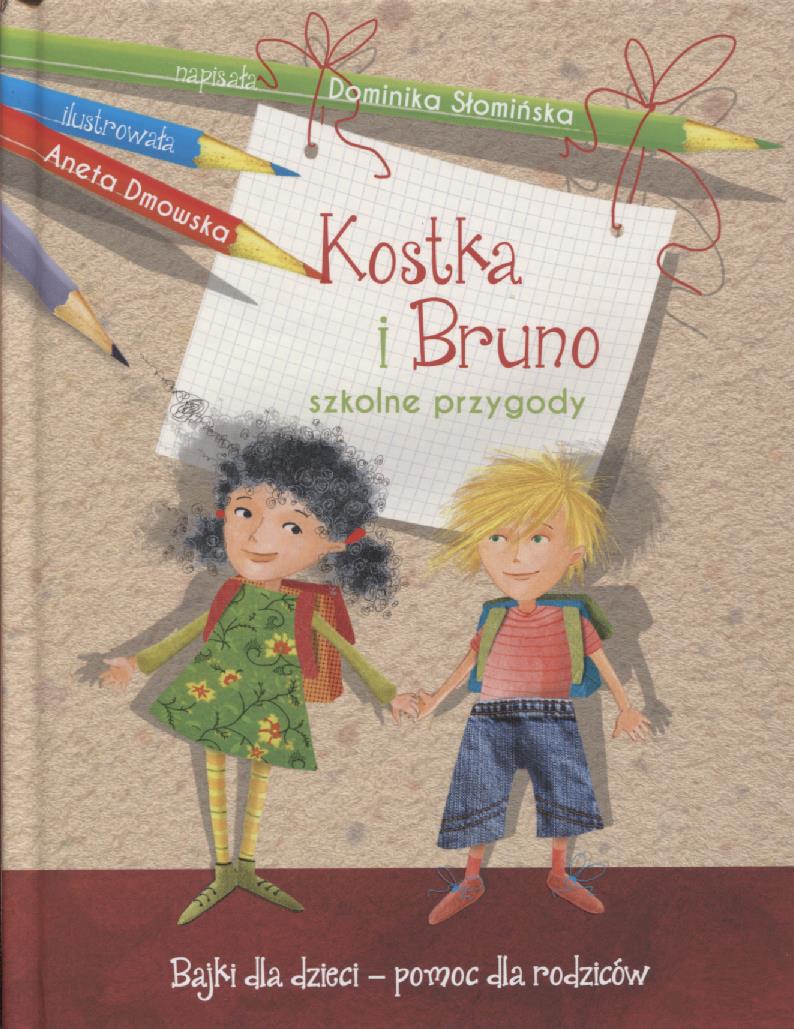 Dzieciaki, przedstawiam Wam Kostkę i Brunka, dwoje rezolutnych przyjaciół. Jak sobie radzić z porażką? Czy Święty Mikołaj istnieje? Po co się przeklina? Czy grubas i gruby to znaczy to samo? Na czym polega prawdziwa pomoc? Dzieci w czasie swoich szkolnych przygód znajdują odpowiedzi na te i inne pytania. Jeżeli Wy też chcecie je poznać, poproście rodziców, żeby przeczytali Wam tę książkę. A może spróbujecie przeczytać ją sami?
